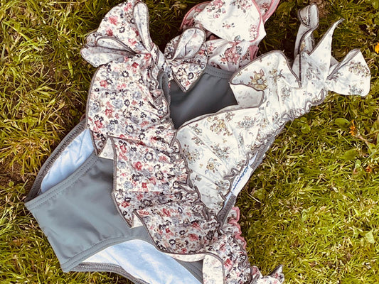 Bañador Bonaire azul con volante florecitas
