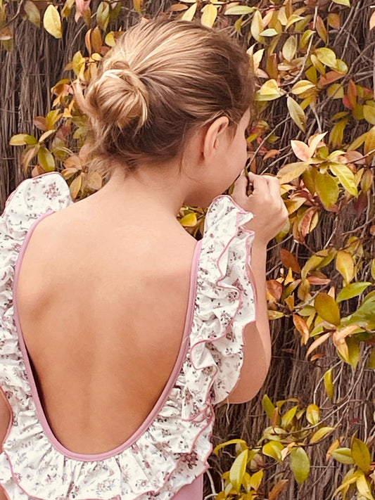 Bañador Bonaire rosa con volante flores