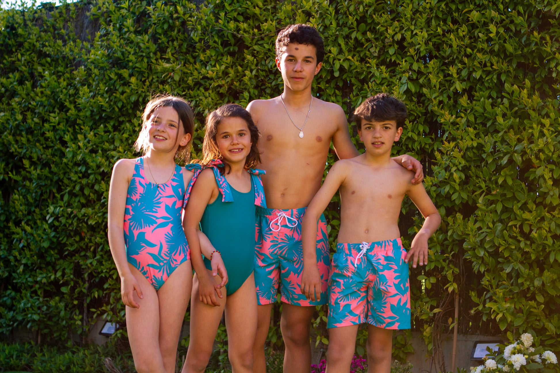Trikini en estampado flores verdes y fresas.